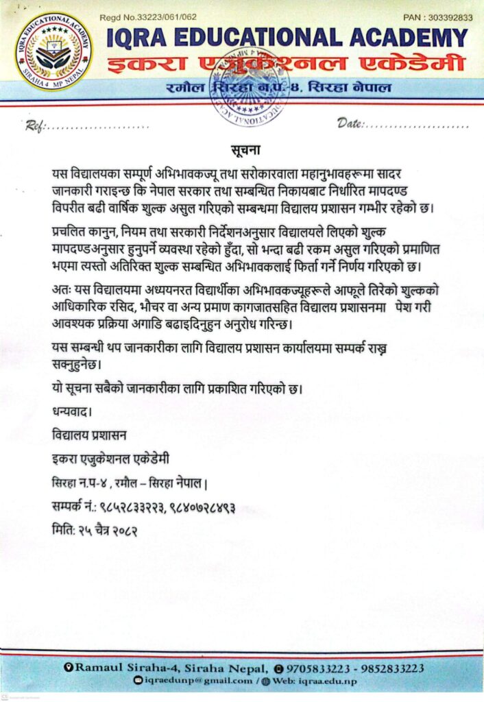 Welcome to Iqra Educational Academy, where we empower young women through education. Located in Ramaul Siraha, Nepal, our focus is on academic excellence and personal growth in a supportive environment. Join us in shaping brighter futures.